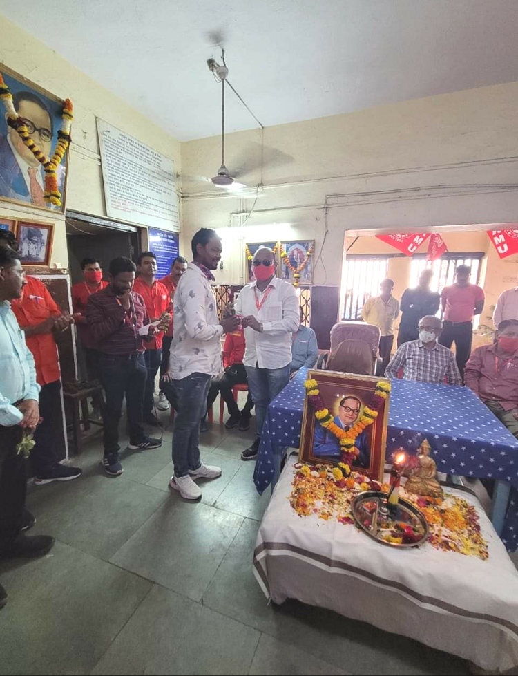 On the 06.12.2021 a meeting was arranged at Kalyan to honour the President Ramesh Pawar & Office Bearers of SC/ST Association from Shahad-Kasara Branch who joined unconditionally into NRMU. they all are welcomed by GS Com. Venu P. Nair by offering them Union Card.