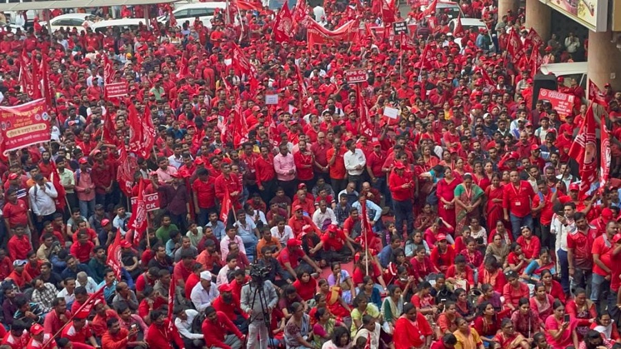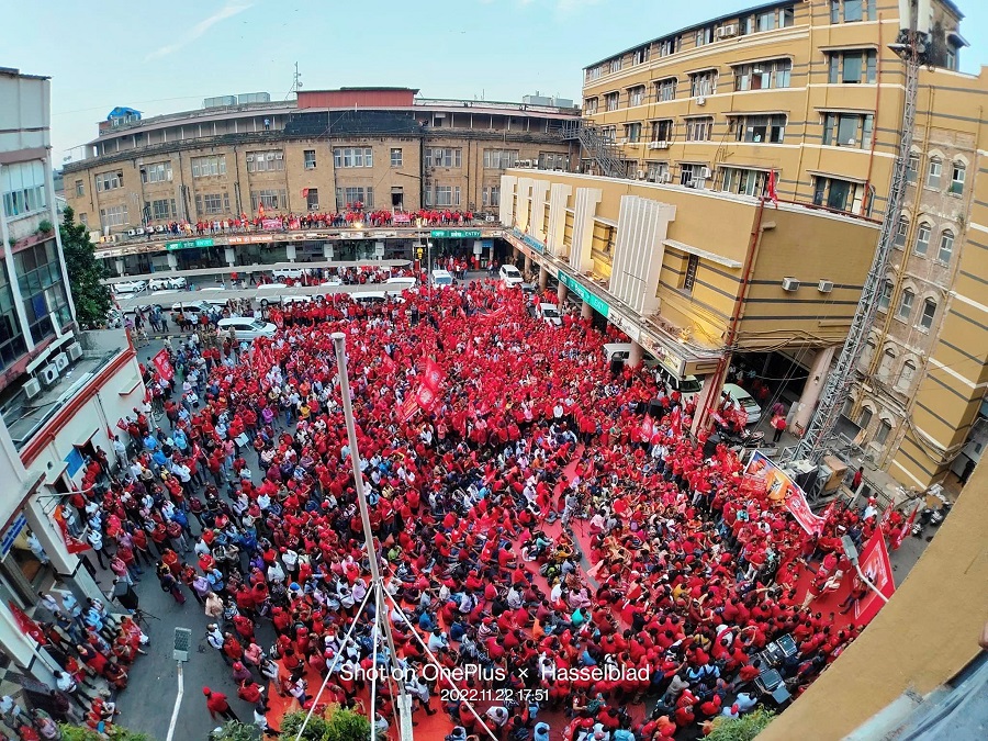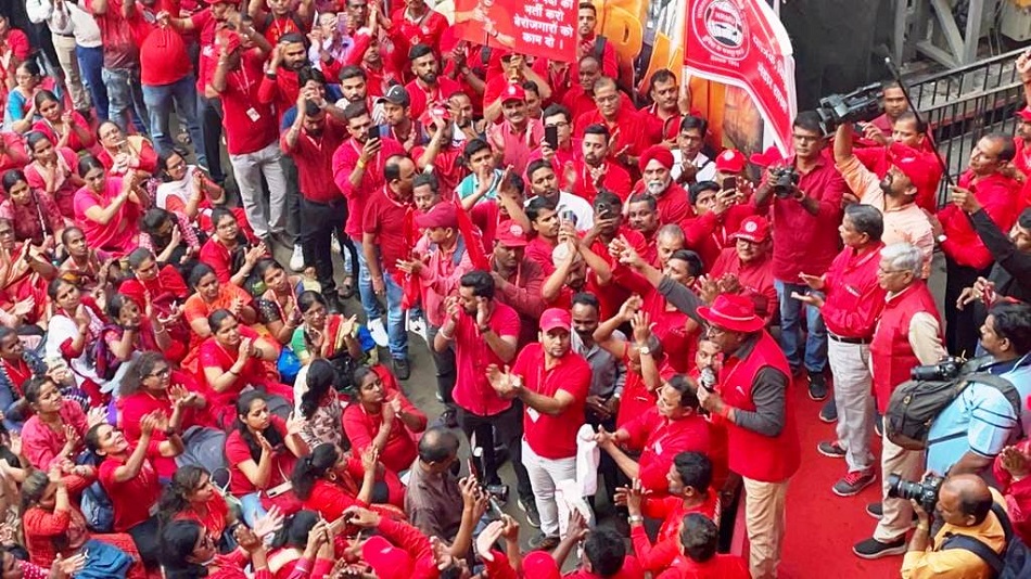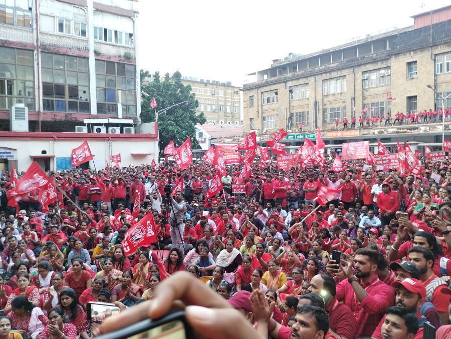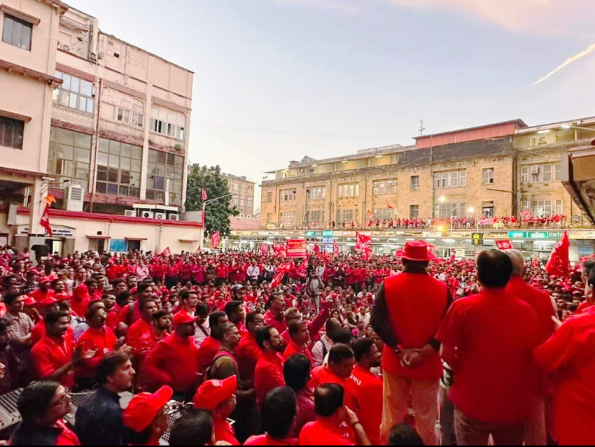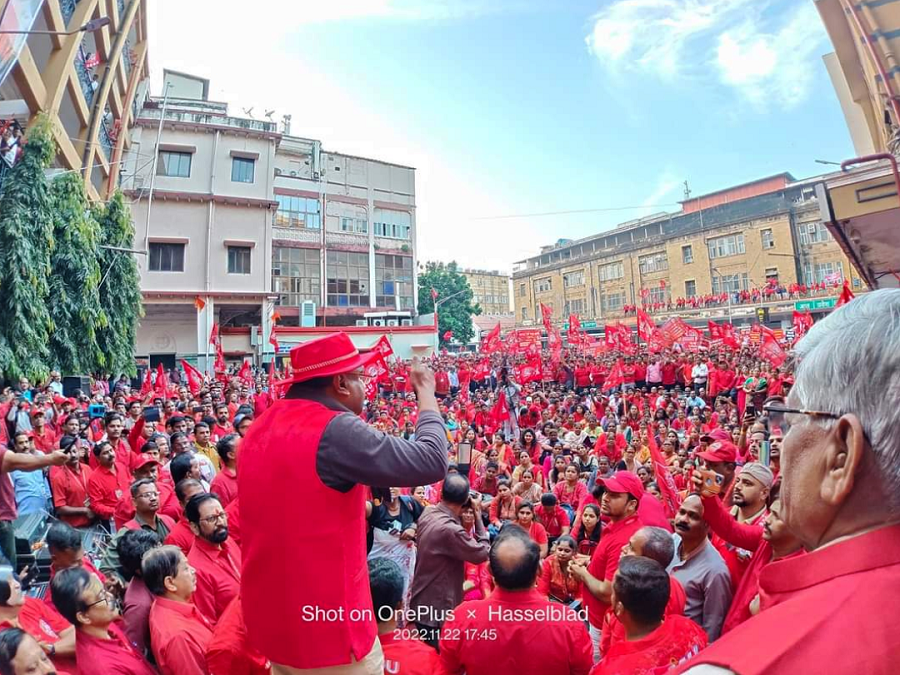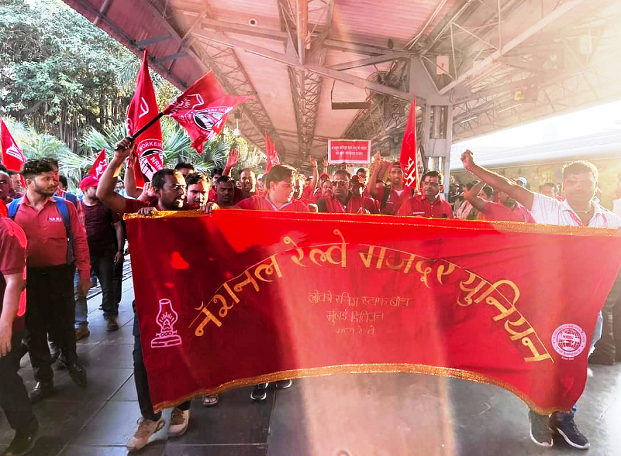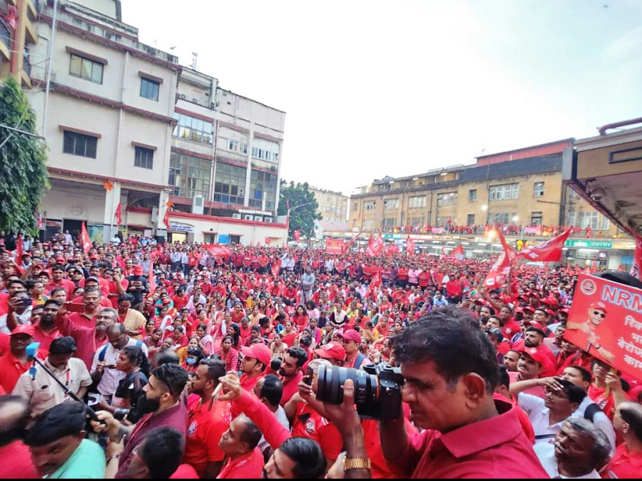 In pursuant to directives given by Com. Venu P. Nair GS/NRMU(CR/KR) and clarion call given by AIRF to hold massive demonstration in support to the long pending demands and to protest against government policies of Privatization & Demonetization, National Railway Mazdoor Union(CR/KR) held “MAHAMORCHA” on 22nd November 2022 in front of DRM office Mumbai at 17.00 hrs. About 50000 Railway employees mostly youths were present including large numbers of women employees in jubilant and enthusiastic mood roaring their anguish over the injustice being done by the Goverment.