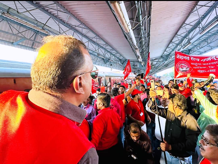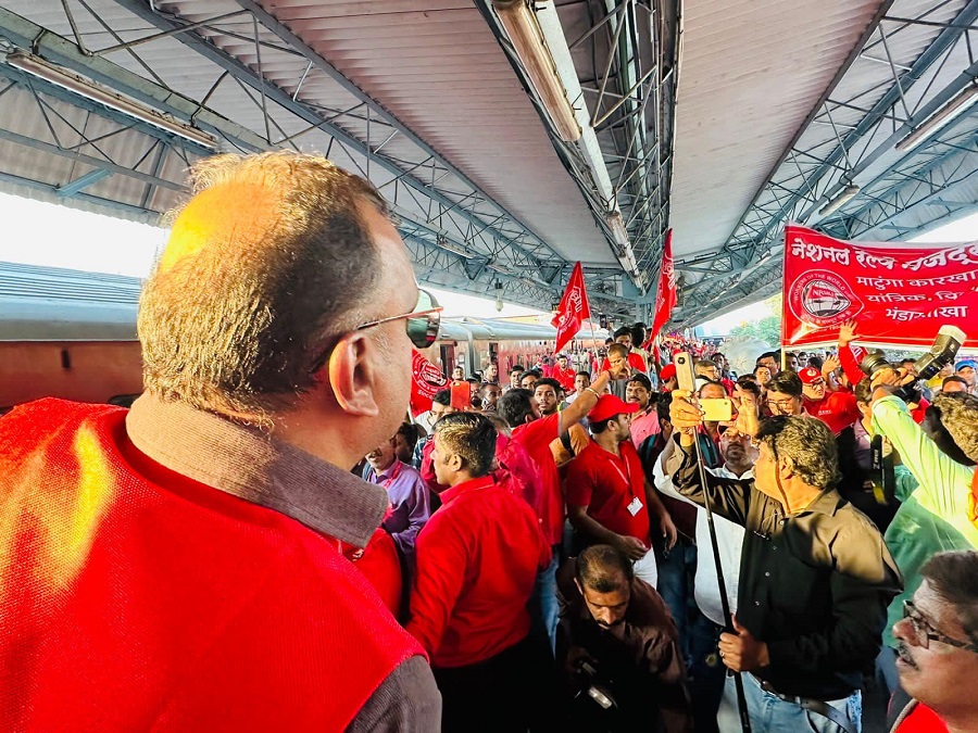 Com. Shivgopal Mishra GS/AIRF also addressed the meeting and congratulated Com. Venu P. nair for arranging such a huge protest demonstration and his style of working. He urged that the youth comrades who are in large numbers in Central Railway should come forwards and strengthen the Union. Furhterh he said that if Govt. will not agree with demands of Federation like a) Withdrawal of NPS, 2) Stop the Surrender of Posts. 3) Stop the Privatization & Monetization of Railways 4) Fill up the vacancies and other important issues federation will not shy away to resort to aggressive agitation which would bring nation to stand still.