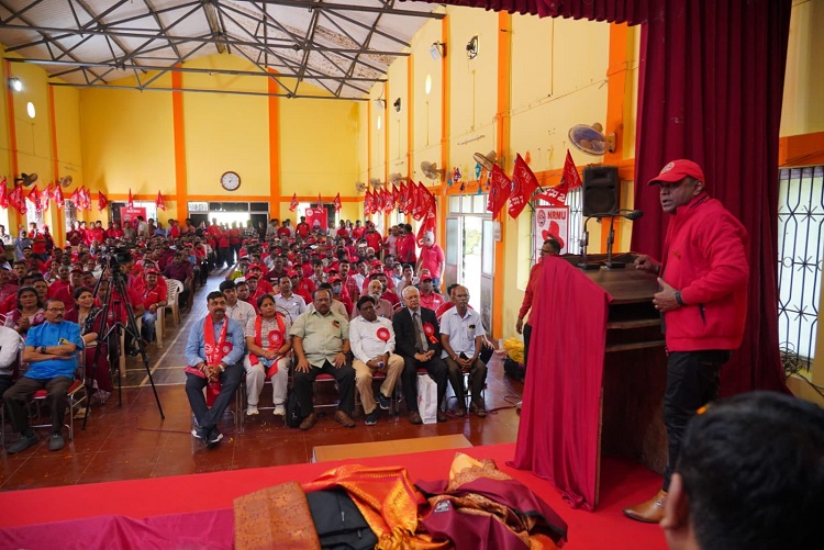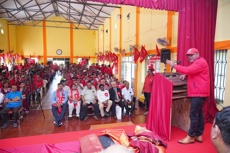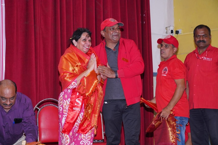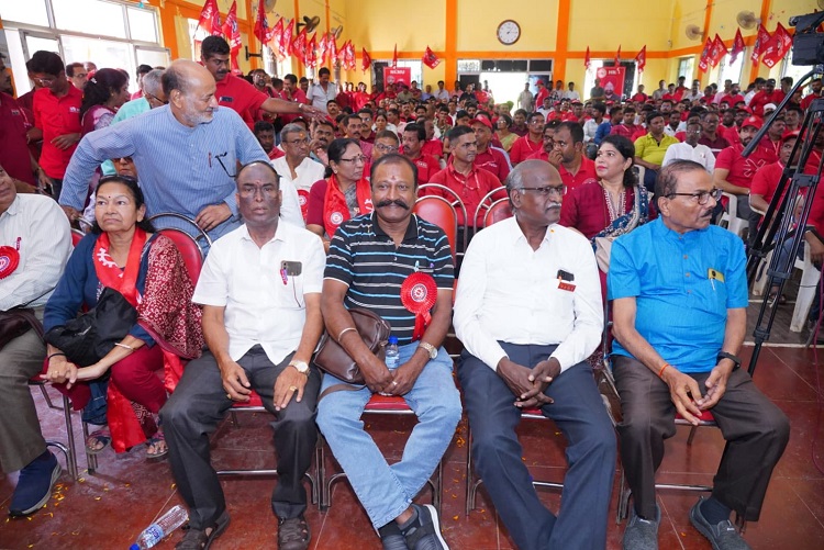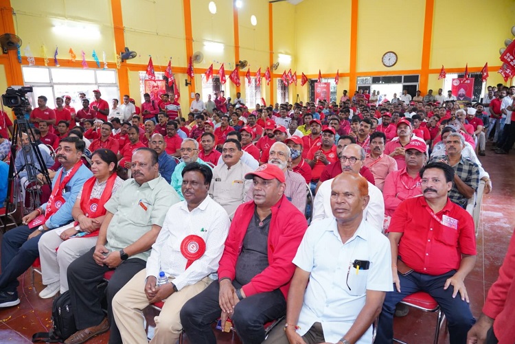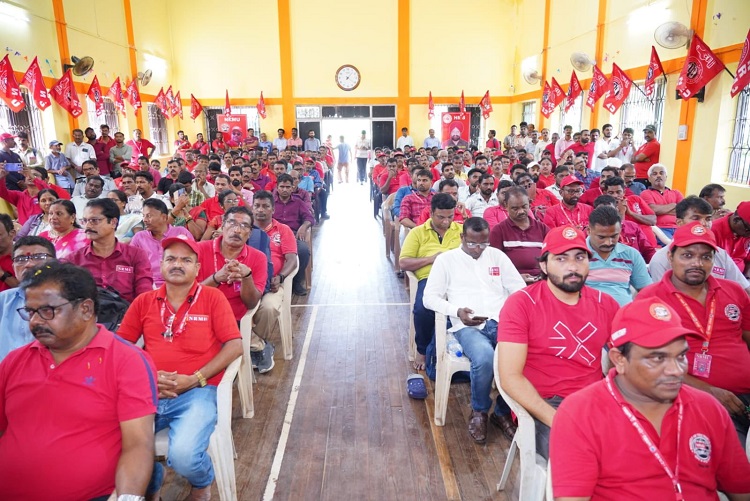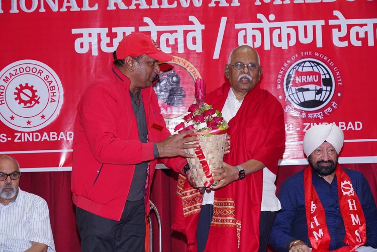 A meeting of Konkan Railway workers was held on 12th September 2025 at 12:30 PM at the Community Hall in Madgaon. The meeting was addressed by Comrade Harbhajan Singh Sidhu, General Secretary, HMS, and Comrade Raja Sridhar, President, HMS. Along with them, other senior office bearers of the organization also addressed the workers. The meeting was conducted by Comrade Shet, Working President, NRMU, and concluded with the address of GS/NRMU Comrade Venu P. Nair.
