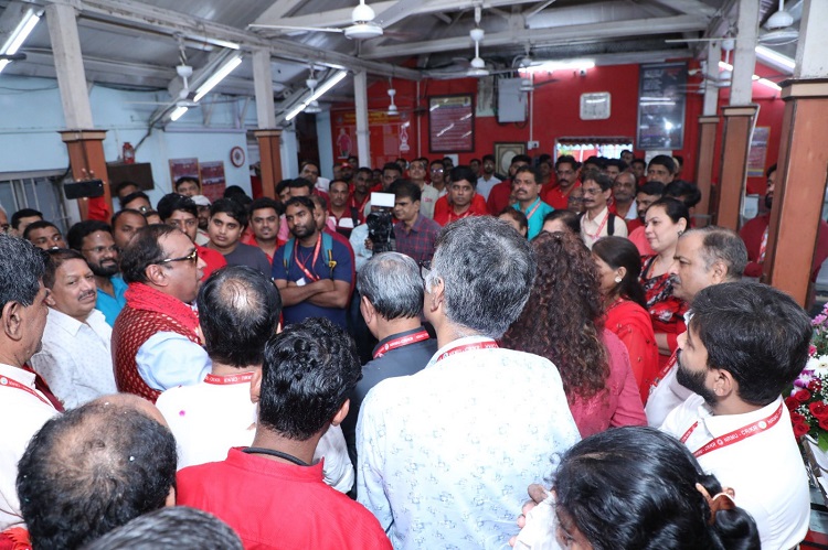 Thousands of comrades from various branches of Mumbai and other Divisions of Central Railway gathered at the NRMU (CR/KR) Headquarters on 23rd September 2025 to greet me on my Birthday. From the early morning hours, the office was filled with flower garlands, currency garlands, rose-petal showers, traditional headgear, and resounding slogans of unity and admiration. With utmost humility, I am deeply overwhelmed and express my heartfelt gratitude to each one of you. I hope my address in return—on the philosophy of a fruitful and blissful life, the essence of humanity, brotherhood, compassion, fraternity of the working class, the need for a strengthened union to fight injustice, and the indispensable role of youth and women in leading union activism—was received with the same warmth and seriousness with which it was delivered. This celebration was more than just a Birthday—it was a grand reaffirmation of our solidarity, fraternity, and the indomitable faith and confidence you all continue to place in me. For that, I remain ever indebted. Thank you once again from the bottom of my heart.