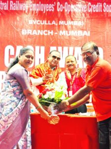 The Cash Award Ceremony 2025-26 of Central Railway E.C.C. Society Ltd., Mumbai Branch was organized on 06/03/2026 at 11:30 AM at Kurla Railway Institute Hall in the August Presence of GS/NRMU(CR/KR) Com. Venu P. Nair.